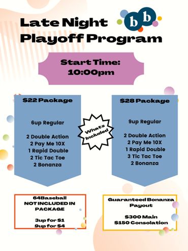 Full Lottery available! Lottery tickets, scratch tickets, keno & bingo swag!